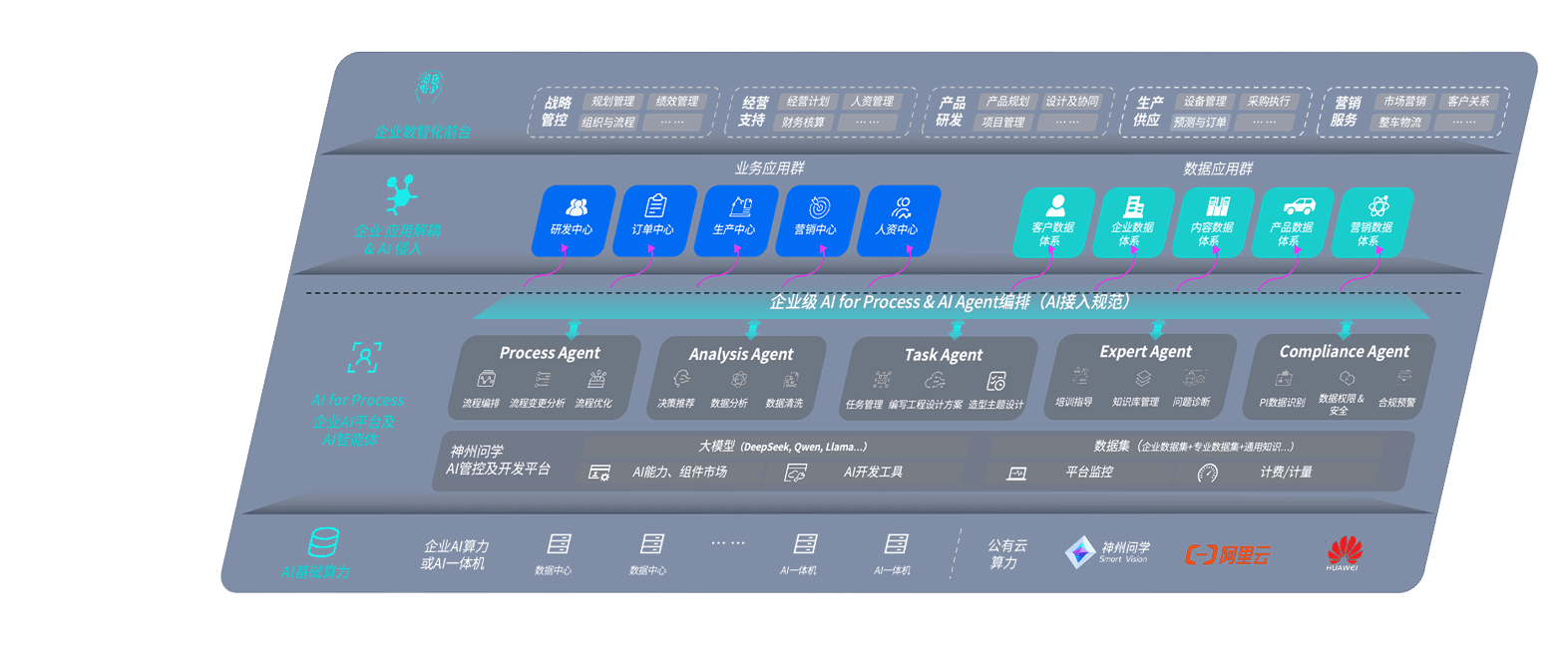 端到端的一站式AI工作空间深度融合了从企业战略规划到日常经营的全流程业务板块,,,,定向解决车企内部领域多、、部门多、、、、链条长、、、、场景碎片化等难题,,支持车企快速构建以AI为核心的生产力写作体系,,实现任务执行与AI能力的无缝集成与交互